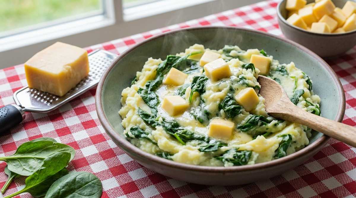 Maak deze stamppot van rauwe spinazie met kaas zo extra romig en in balans